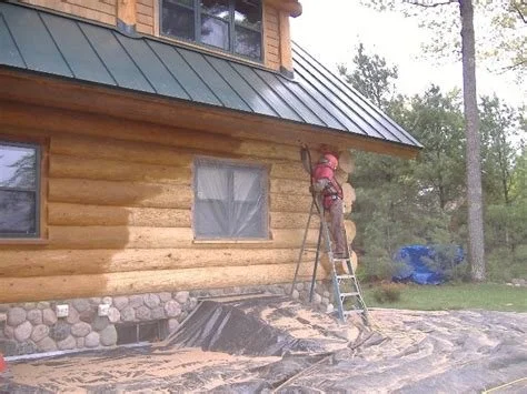 This is personally the best way to proceed with cleaning you log home. We use eng. crushed glass media in a middle of the road 50-70 grain that is strong enough to do the job without damaging the logs and environmentally friendly. We try to clean most of the sand debris left on the ground as much as possible and the rain will take care of the rest. We can bring back the old tired look of most log, timber, siding, decking, fencing, cedar shakes to its original beauty. Before removing it and changing it, always worth restoring it…